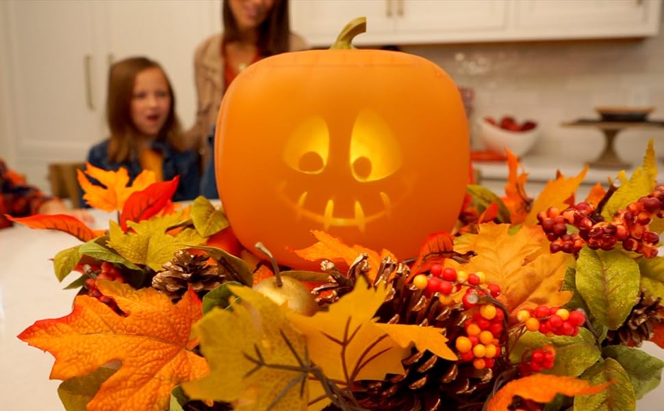 “This is a pretty amazing pumpkin. I love it! Easy to change the settings, great volume control, the animation is spot on. The pumpkin itself feels sturdy and well made. I plan on doing an entire animated theme this year for Halloween. Between the hologram witches and now this pumpkin. Halloween is going to be awesome! Thank you!!”